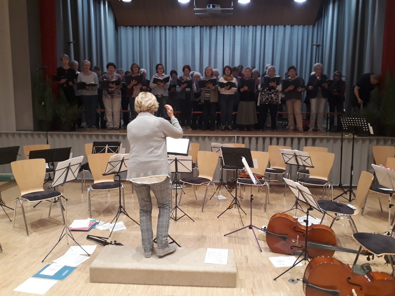 Proben in der Aula der Achalmschule Eningen