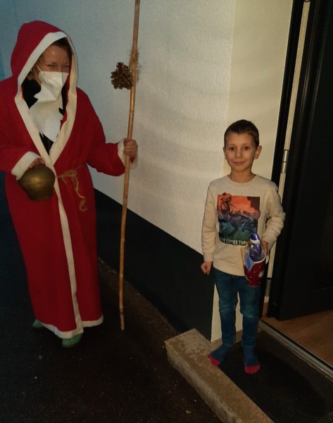 Die letzte Online-Probe wurde kurzerhand abgesagt und die Kinder bekamen dafür einen kurzen Besuch des Nikolauses - natürlich mit Abstand und FFP2-Maske - der ein kleines Geschenk vorbeibrachte.