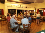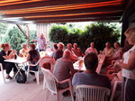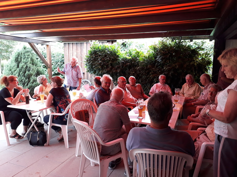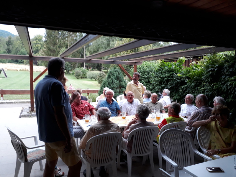 Seit einigen Jahren schon dürfen wir beim VdH Eningen zu Gast sein. Da man sich über den Sommer nicht jede Woche in der Probe sieht, hat man hier noch einmal die Gelegenheit zum Schwätzen und auch für das leibliche Wohl ist u.a. dank des von den Sängerinnen und Sängern mitgebrachten Salat- und Dessertbuffets gesorgt. Und natürlich wird auch noch einmal fleißig gesungen.