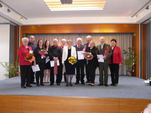Aber was wäre ein Verein ohne die vielen fördernden Mitglieder, die dem Chorgesang zugetan sind und diesen durch ihren Beitrag unterstützen und ermöglichen. Auch diese sollten geehrt werden: Für 30 Jahre Gertrud Sautter und Adelinde Bohn, für 50 Jahre Wolfgang Sautter, Albert Guhl und Hermann Astfalk. Und seit beinahe unglaublichen 65 Jahren wird der Verein von Herbert Sautter unterstützt.