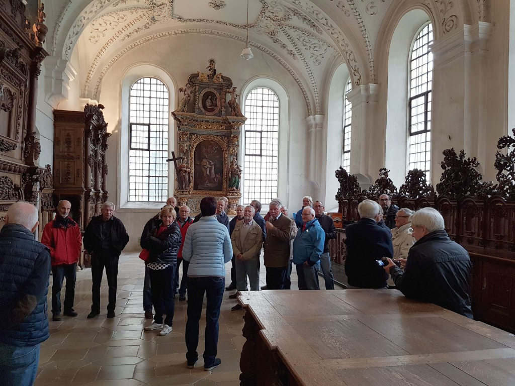 Von dort ging es weiter zum Kloster Obermarchtal. Dort wurden wir von unserer Führerin, Frau Striegel, erwartet. Kompetent und anschaulich wurde uns die Entwicklung des Klosters vom 8. Jahrhundert bis heute anschaulich vermittelt und alle „Highlights“, die das Kloster bietet, konnten besichtigt werden.
