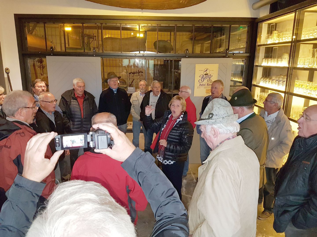 Vor der Brauereibesichtigung gab es zur Stärkung vorab ein gutes „Ulrichsbier“, auch hier konnten wir die passenden Lieder singen – der Beifall der Gäste hat gut getan. Im Anschluss gab es die Brauereibesichtigung mit Verkostung des ungefilterten Bieres. Zum Abschluss der Führung bekam jeder noch eine Probe überreicht – ein fertiges Bier zum sofortigen Genuss und ein Bier zum „selber reifen lassen“.