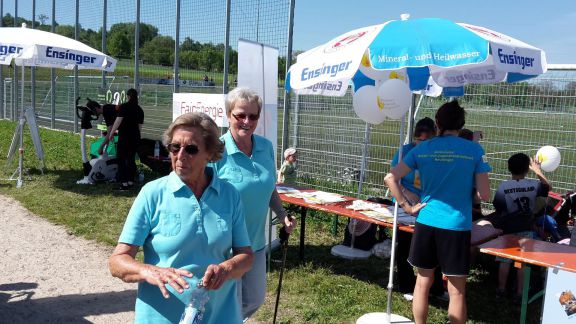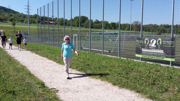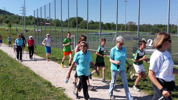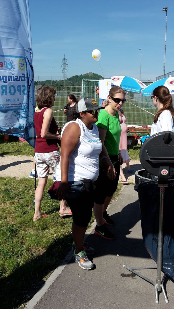 Anschließend machten sich die 8 Damen vom Frauenchor und je eine Sängerin von den Achalmfinken und von music and more auf den Weg. Trotz brütender Hitze brachten sie insgesamt 85 Runden auf die Bahn. Das nötige Kleingeld dazu hatte der Männerchor gespendet.