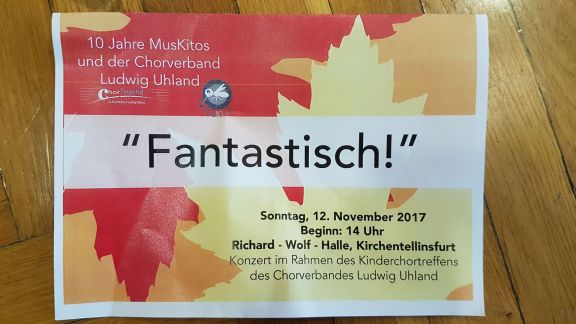 Als Erstes gaben uns die Muskitos minis und die Muskitos maxis aus Kirchentellinsfurt acht verschiedene Lieder zum Besten. Nach einer anderen tollen Vorstellung kamen wir dran. Wir sangen: „Wir sind die Achalmfinken“, „Die alte Moorhexe“ und „Im Salzkammergut da kann man gut lustig sein“ aus der Operette „Im weißen Rössl“.