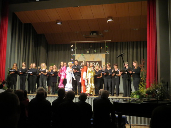 Für den letzten Teil des Abends eroberten dann music and more und die großen Achalmfinken die Bühne der HAP-Grieshaber-Halle. Sie präsentierten schwedische Pop-Musik der 70er und 80er Jahre, also – man konnte es schon ahnen – ABBA.