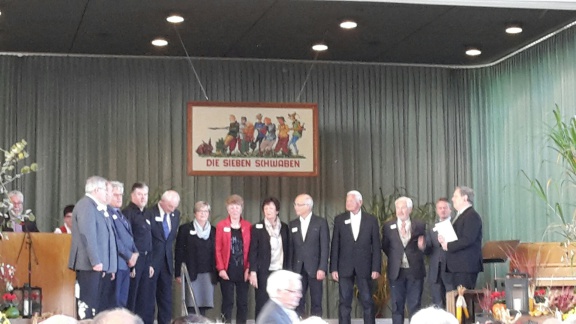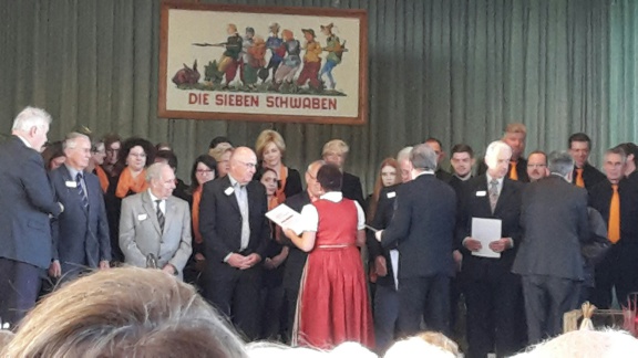 Am 22. Oktober machte sich eine Delegation des Gesangvereins – teilweise nach einer recht kurzen Nacht nach dem Stiftungsfest – auf den Weg nach Degerschlacht. Hier fand in diesem Jahr die Ehrungsveranstaltung des Bezirks Achalm im Chorverband Ludwig Uhland statt. Bei dieser zentralen Veranstaltung werden langjährige Sänger vom Schwäbischen und vom Deutschen Chorverband geehrt.