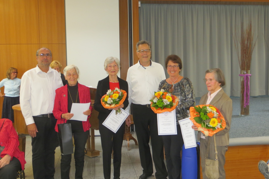Von den fördernden Mitglieder konnten Elisabeth Roths und Doris Hummel für 40 Jahre und Else Reiber für 30 Jahre geehrt werden. Leider verhindert waren Fritz Fausel, der auf sage und schreiben 60 Jahre Mitgliedschaft im Verein zurückblickt. Horst Hank kommt auf 50 Jahre und Walter Maier auf 30 Jahre; dessen Ehrung hat stellvertretend seine Frau entgegengenommen. Für jeweils 20 Jahre geehrt wurden Isabel und Sabrina Neumann, die „verbandsrechtlich“ zwar als fördernde Mitglieder gelten, aber eigentlich bei jedem Auftritt von music and more mit von der Partie sind. Deren Ehrungen nahm stellvertretend Chorleiterin und Mutter Brigitte Neumann entgegen.
