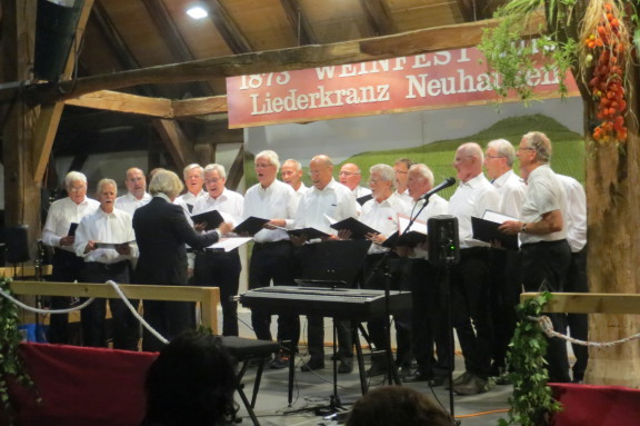 Es ist schon gute Tradition geworden, dass die Männer vom Gesangverein Eningen – unterstützt von einigen „Schlachtenbummlern“ – im November zum Sängerabend beim Weinfest in Neuhausen gehen. Warum es da einen Sängerabend gibt? Weil das Fest vom Liederkranz Neuhausen veranstaltet wird.