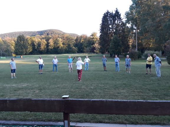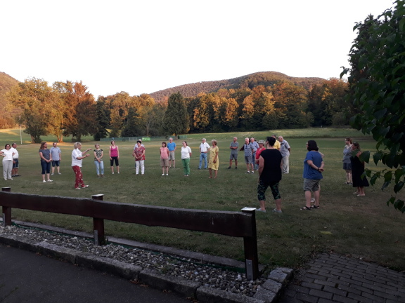 Dennoch war es für alle Anwesenden schön, sich wieder einmal zu sehen. Und dank des großen Trainingsplatzes hatten wir auch die Möglichkeit, ein paar Lieder gemeinsam anzustimmen - mit genügend Abstand und im Freien, also idealen Hygienebedingungen.