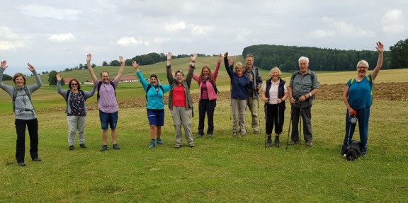 Wie auch schon im vergangenen Jahr ließ es sich eine kleine Gruppe vom Gesangverein nicht nehmen, in eigener Sache zu laufen, nämlich für den Chornachwuchs. Und so machten sich am vergangenen Sonntag 11 Wanderer mit Hund auf den 12 km - Weg vom Gestüt in St. Johann über den oberen Stausee, entlang des Albtraufs mit tollen Ausblicken bis zum Rossfeld – hier war auch der Fotopunkt der Strecke. Über die Höllenlöcher und die Hohe Warte ging es dann wieder zurück zum Parkplatz.