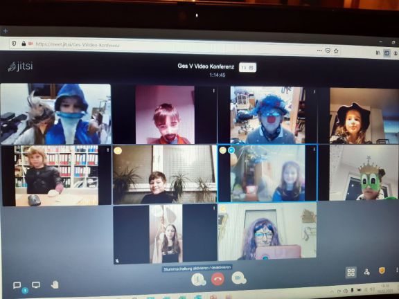 Am Anfang begrüßte Petunia Fasching uns alle, wobei sie den Bildschirm verkehrt herum hatte. Sie sagte aber immer, dass WIR Kopfstand machen würden, was ja gar nicht stimmte! Wir lachten und protestierten laut.