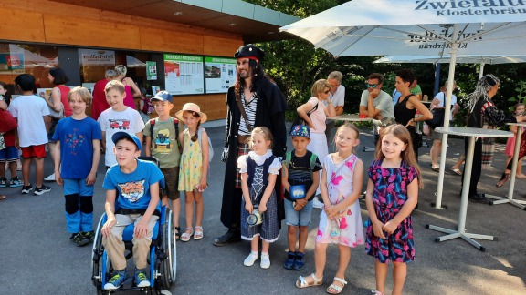 Gebannt verfolgte der Chornachwuchs und die Begleiter die Geschichte von Pippi Langstrumpf und ihren Freunden, die es mit einer waschechten Piratenbande aufnehmen mussten. Einem Piraten sind wir sogar begegnet.