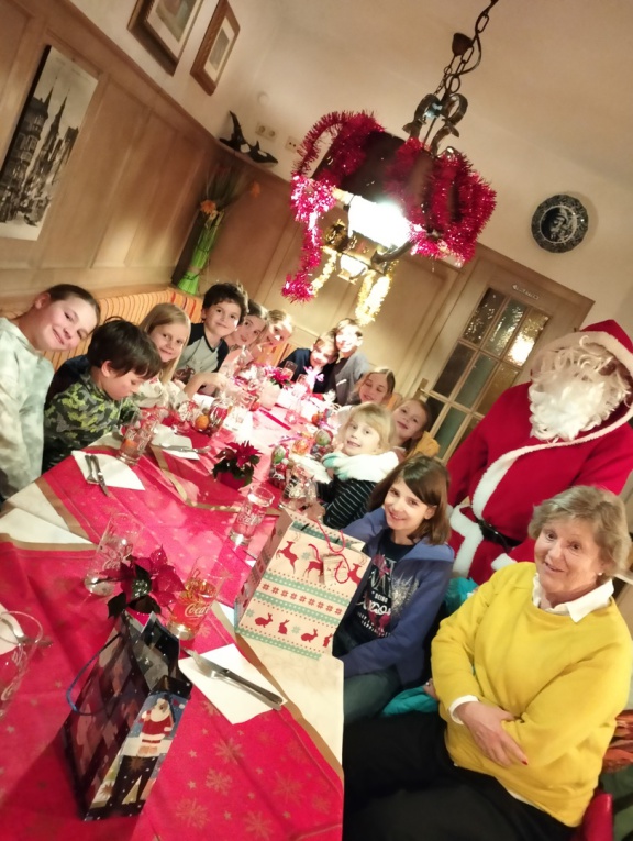 Und auch ein unangekündigter Besucher im roten Mantel und mit Geschenken für die jungen Sängerinnen und Sänger, Chorleitern Brigitte Neumann und Betreuerin Anja Renner war mit von der Partie.