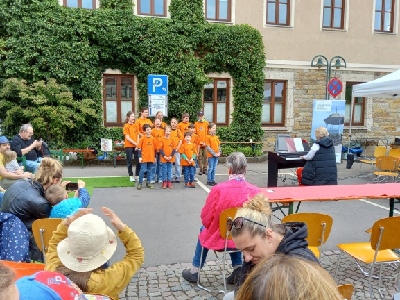 Und mit dabei? Natürlich die Achalmfinken - unser Kinderchor. Der Sängernachwuchs präsentierte unter Chorleiterin Brigitte Neumann einen kleinen Querschnitt aus dem Repertoire. Und es war schon ein besonderes Erlebnis, in solch einer Kulisse aufzutreten.