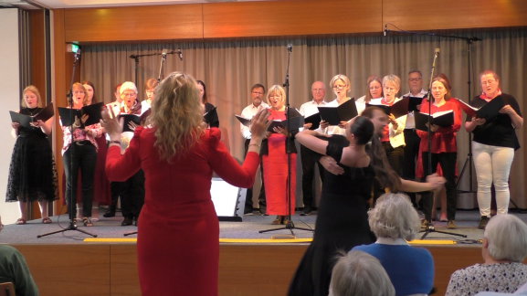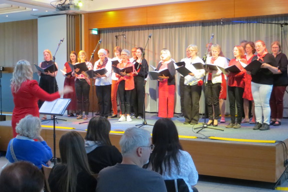 Von der Bühne konnten die Sängerinnen und Sänger allerdings noch nicht, denn der ausdauernde Applaus des Pubkikums „nötigte“ den Chor zu gleich zwei Zugaben. Zuerst stimmten sie noch einmal „Singing all together“ an, dieses Mal aber gemeinsam mit dem Publikum und im Kanon, bevor das mitreißende „Un poquito Cantas“ tatsächlich den musikalischen Schlusspunkt setzte.