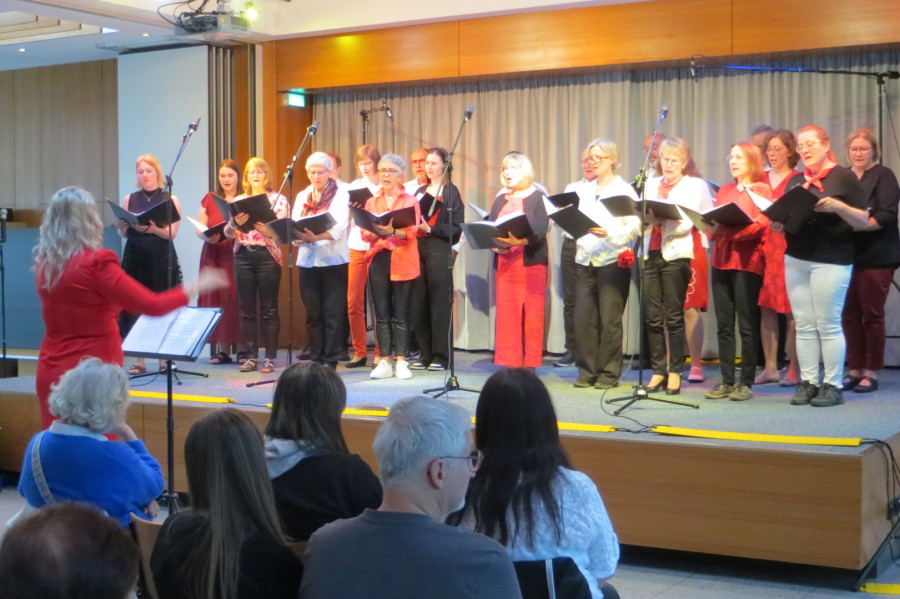 Locker zu ging es beim Jazz-Kanon “Dubadap da” von Uli Führe, einem Lörracher Komponisten, Musiker und Stimmbildner, der sich übrigens auch mit deutschen Dialekten bestens auskennt. Den vorläufigen Abschluss vor der Pause bildete „Applaus, Applaus“ von den Sportfreunden Stiller; somit war an diesem Abend auch ein wenig Fußball-Bezug hergestellt, denn auch hierzu gibt es von den Sportfreunden einen passenden Song.