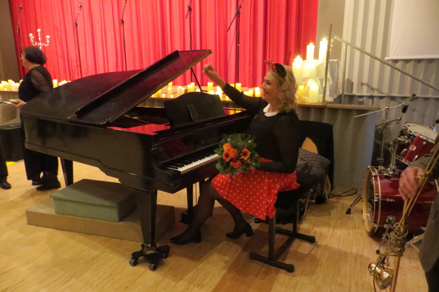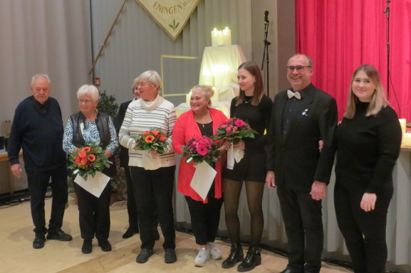 Zum Schluss galt es dann noch, Danke zu sagen: Den Solisten, Moderatorin Kira Sautter, Gert Kürner von der Musikschule Hoffnungsland, zuständig für die Tontechnik, Daniel Rieger, in der zweiten Hälfte des Abends am Schlagzeug, Katja Smyka, die die Chöre wieder einmal den ganzen Abend bravourös am Klavier begleitete und natürlich den Chorleiterinnen Ana Sorocean und Brigitte Neumann, die auch die musikalische Gesamtleitung des Abends innehatte.